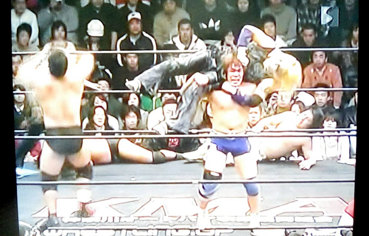 Daikokubo Benkei/MIYAWAKI/Yuichi Taniguchi vs. Kazu Imai/Tomomitsu Matsunaga/Shinobu - Opening comedy type match. I skipped around in this bout.