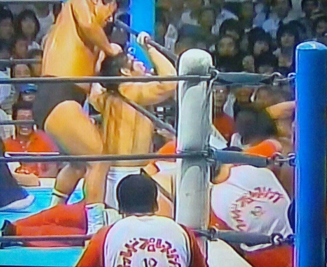 Tiger Mask/Osamu Kido vs. Kuniaki Kobayashi/Isamu Teranishi (8/1/83): jip but what was shown was really good stuff. Lots of trying to steal the mask. Isamu damn near pins Tiger with a German suplex. Great finish...kinda like a leg trap powerbomb! Fighting after the bell too, I love it!