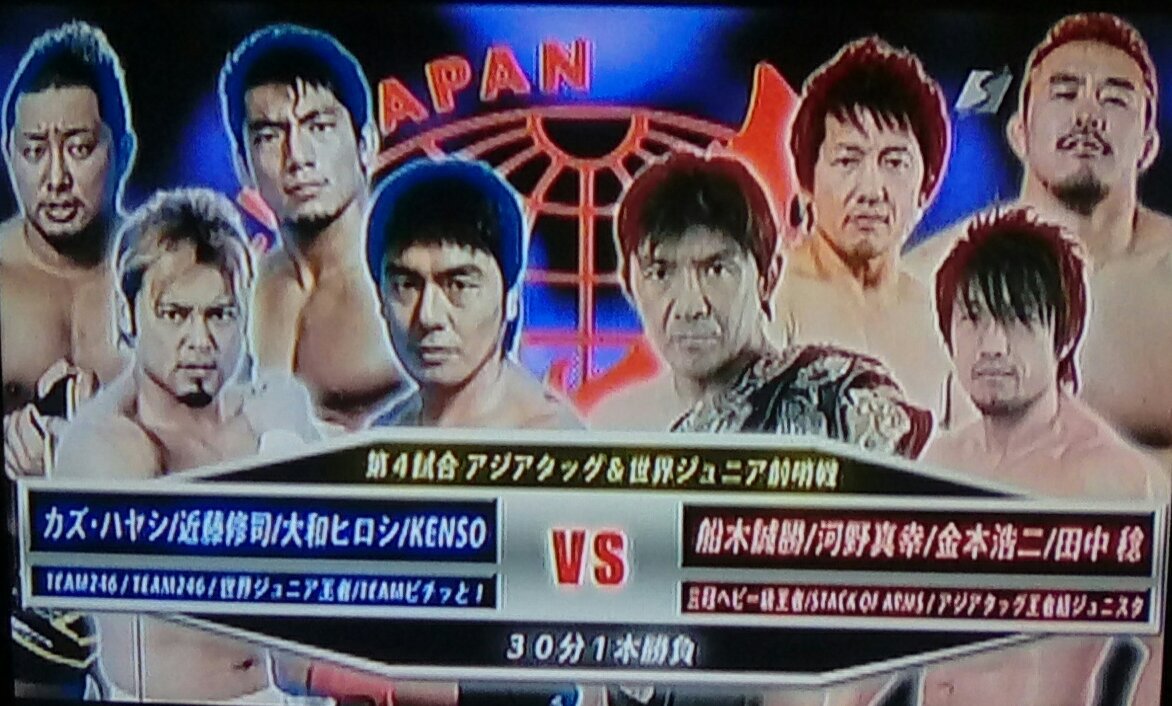 Takao Omori/Manabu Soya -vs- Taiyo Kea/Seiya Sanada- Great Real World Tag match! Hard hitting, excellent grappling, tons of heart and although we don't get a definitive outcome, this was top notch stuff. Everyone was just on the top of their game.