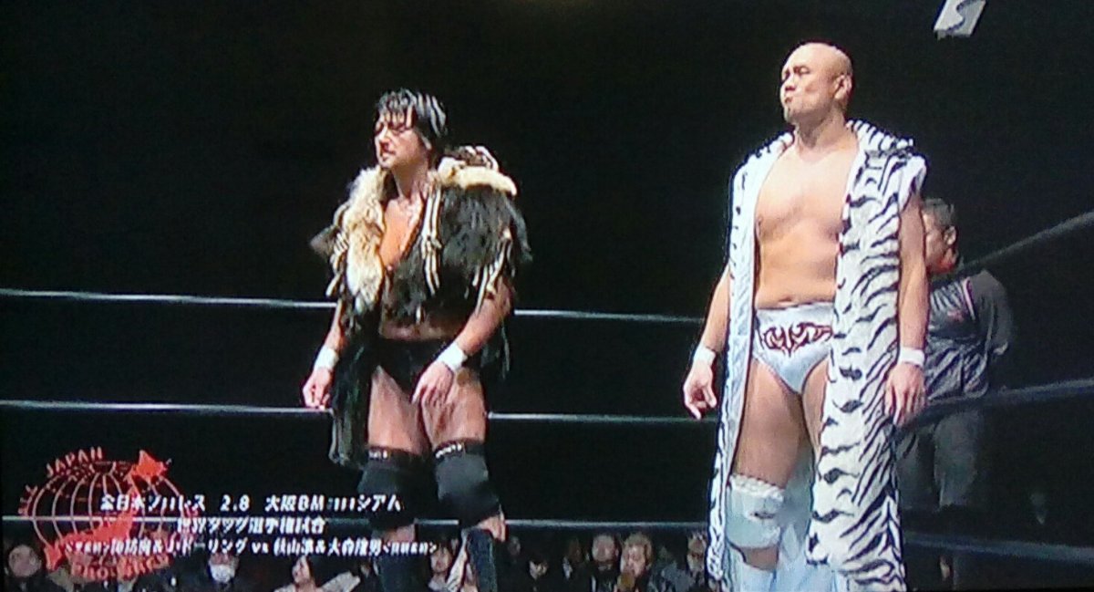 Joe Doering & Suwama vs. Jun Akiyama & Takao Omori - Tag belts on the line. This starts out well enough and is going along at a good pace. It's operating in that ***3/4 range but eventually switched into high gear. The attacks became fierce, the defensive actions got more desperate and everything just felt more urgent. I really know they have a classic match in them. As it is I would say this ends up as a near classic ****1/4 bout.
