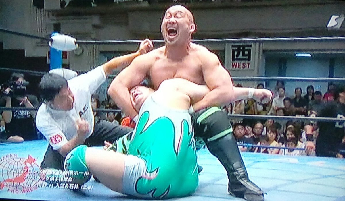 Atsushi Aoki vs. Hikaru Sato - Now for something different! Aoki and Sato put on a shoot/Inoki-strong style match for the Junior title. Lots of very good grappling and fighting for holds. I would have loved to see more scrambling on the mat. Maybe why that's why I can't call it a great match. I think if the pace was quicker or more like a real fight then this easily could have been fantastic. Now I still really dug it especially Aoki's work. I think there was a portion where this was going to be a little more pro leaning but once they decided to make it more shoot style, it got really good.