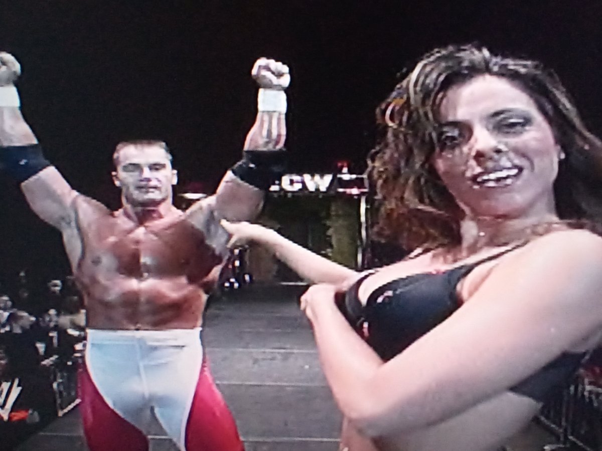 The focus is totally Lance Storm in this picture...100%. In all seriousness, Dawn Marie was one of the best valets in ECW and helped keep the heel scene fresh. Absolutely hilarious character too. She struck a balance between sexy and legitimately funny that I'm not sure I've seen elsewhere. That was a great role because Lance & Justin were so damn serious.