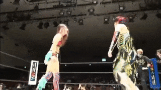 I just wanted a post an example of Chigusa's stagger selling & her version of Hulking up. I really think she's one of the best ever at it, strikes the perfect balance between being animated/selling for all four sides of the crowd but without coming across as goofy. I also love the way she spreads her shoulders out as she's squaring up to Kai, makes her look all cool and tough. Chigusa Hulks Up.mp4