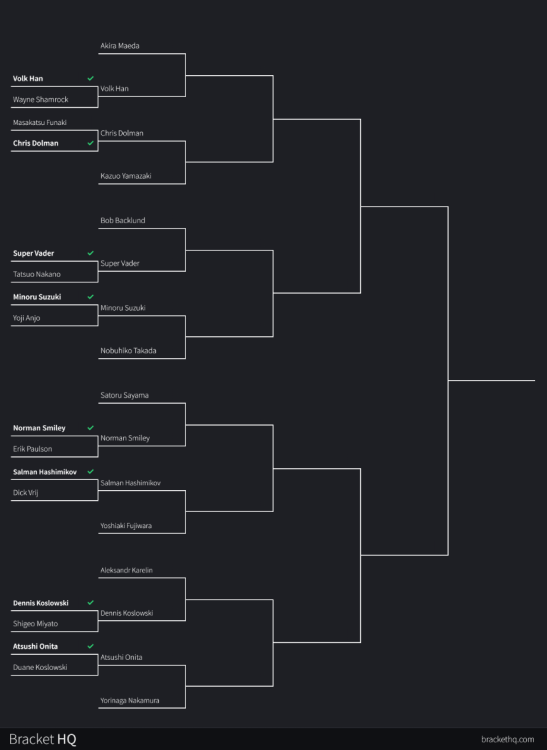 Card Announcement: UWF Newborn - "Moscow Martial Arts Festival" August 24th, 1989 Moscow, USSR Luzhniki Stadium Masakatsu Funaki vs Minoru Suzuki Wayne Shamrock vs Nikolai Zouev Andrei Kopylov vs Volk Han Atsushi Onita vs Vladimir Berkovich Marco Ruas vs Timur Zalasov Judo Jacket Match: "Bad News" Allen vs Grigory Verichev Gary Albright & Steve Williams vs Salman Hashimikov & Victor Zangiev Vader vs Yoshiaki Fujiwara Nobuhiko Takada vs Aleksandr Karelin Akira Maeda vs David Gobejishvili (OOC: This month was a bit busier than expected, so I will be 1-2 days late. Rest assured, it's cooking in the oven!)- Current New Japan
