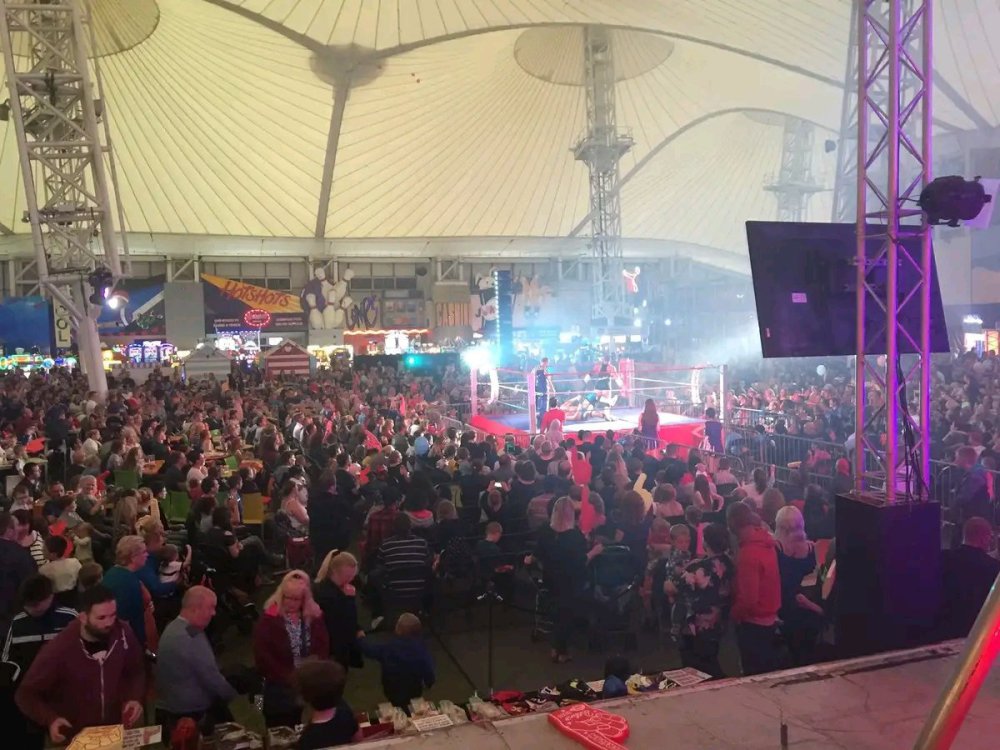 Brazenly thieving this gorgeous 2016 photo of All Star at Butlins holiday camp in Minehead from Dean Allmark's Facebook wall. Who said wrestling at Butlins can't be glamorous?