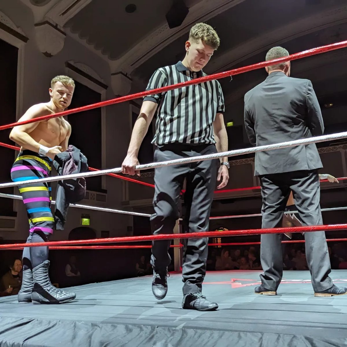 February 16, 20241 yr comment_6018193 On 2/13/2024 at 11:11 AM, David Mantell said: Am going to All Star in Dudley on Thursday, will update you all with the action afterwards Four bouts rather than the usual five due to a main event Rumble won by Joel Redman aka Oliver Grey. Nice clean match between two younger wrestlers IIRC Karol Andrews (that's him in the stripey trunks in the first photo) and Ricky Marsh - Andrews won. Otherwise there was a tag match match and a singles bout, both involving larger heels. Nice to see 1990s/2000s veteran heel Phil Powers in the tag match and Rumble. MC for the second half was Tony Spitfire again - check back earlier in the thread for his great match with Dean Allmark from 2013. Referee is All Star's new young proprietor Joe Allmark, grandson of the late Brian Dixon. MC from the first half was Mike Angus from whose FB these pics are filched. That's him with a streetclothes clad (and very dapper looking) Oliver Grey. Kept an eye out for the kid who posted that video from a year ago but no sign of him.