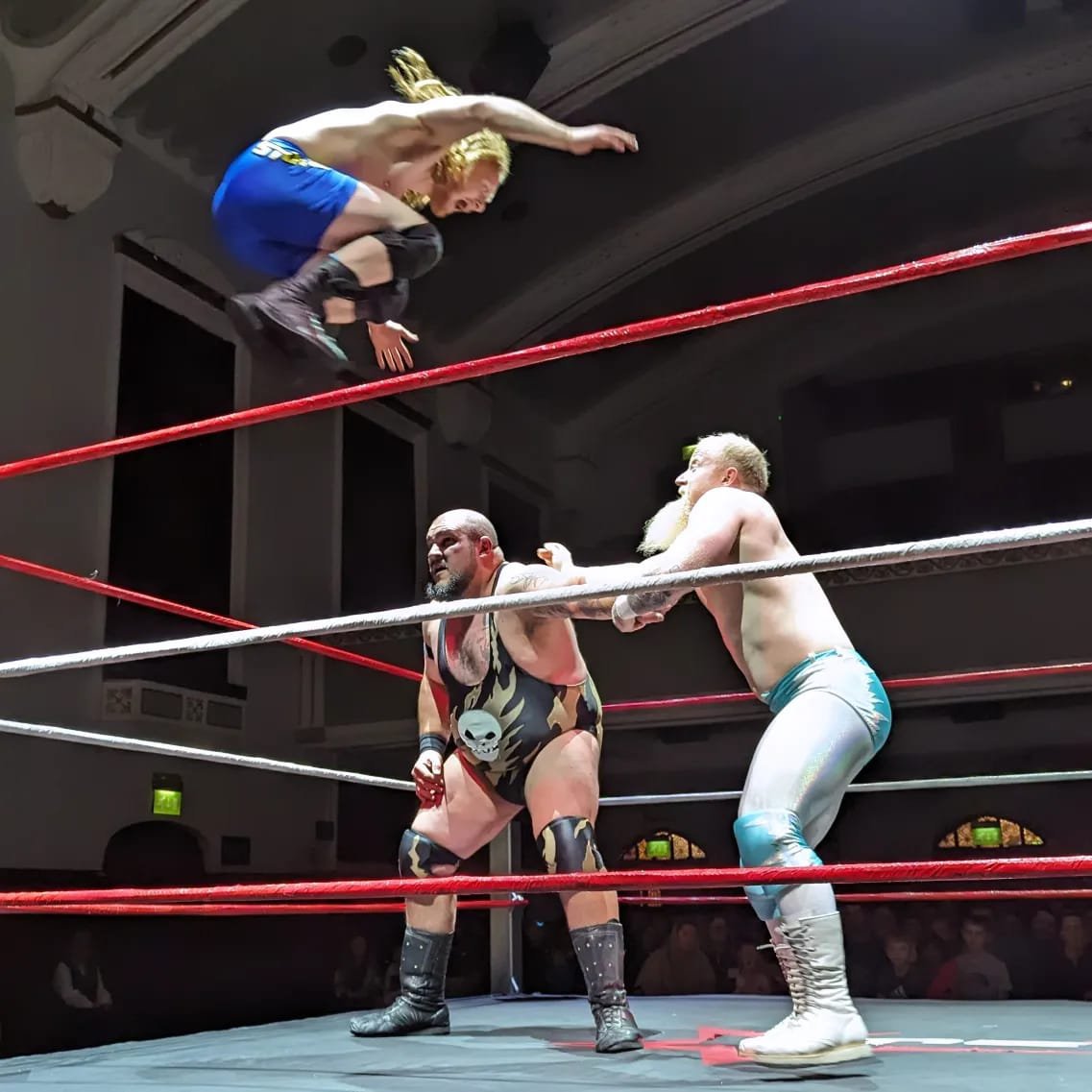 January 4, 20241 yr comment_6016031 On 10/29/2023 at 12:54 AM, David Mantell said: Went to Dudley Town Hall this evening for my first All Star show since the death of Brian Dixon earlier this year. No clean matches tonight but some good technical wrestling between Dylan Roberts and Ringo Ryan, the latter returned to the UK after several years in Australia and whom I recall as a promising bratty young heel in the early/mid 2010s. Also former NXT man Jack Starz pulled off a neat Johnny Saint "lady of the lake" sequence in his losing effort to Welsh strongman heel Caden Lay. The big news as printed in the full colour All Star programme is that Tony Spitfire whom I posted a video of having a classic British clean match with Dean Allmark in 2013 is now a heel, rebranded as the Loudmouth and taking verbal shots at audience members. Not that there was much evidence of this tonight as he was working as MC, doing the introductions in a blokily polite Johnny Vaughan sort of way Superheavyweight tag team The Henchmen were on the bill (accompanied by a partner who was called Cannonball Grisly but clearly was not Paul Neu.) Forty years ago the Henchies would have been obvious cannon fodder for Big Daddy, nowadays they remind me of 1970s opposition heel team The Klonkykes (Jake made it onto ITV against Count Bartelli in 1976 and Bill made it onto French TV Vs Dave "Batman " Larsen in 1973. Together, they were the subject of a docu on BBC2 on the brothers, footage from which appeared in legendary sitcom Til Death Us Do Part on Alf Garnett's TV screen, saving the Beeb from having to pay ITV for footage.) On 10/30/2023 at 10:22 AM, David Mantell said: This was All Star's previous show from Dudley in February. I'm probably somewhere in the crowd but haven't spotted myself yet. Last time I met Brian Dixon before his death, as you can see he was in a wheelchair but still pretty cheerful. Have bought a ticket to All Star's next Dudley Town Hall show Thursday February 15th.